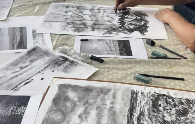 Join exhibition artist, Liz Atkin, to explore techniques and processes in tone, texture, and mark making with charcoal. We will create seascapes from small to large scale, and together we will create a collaborative drawing inspired by the textures of the shoreline.